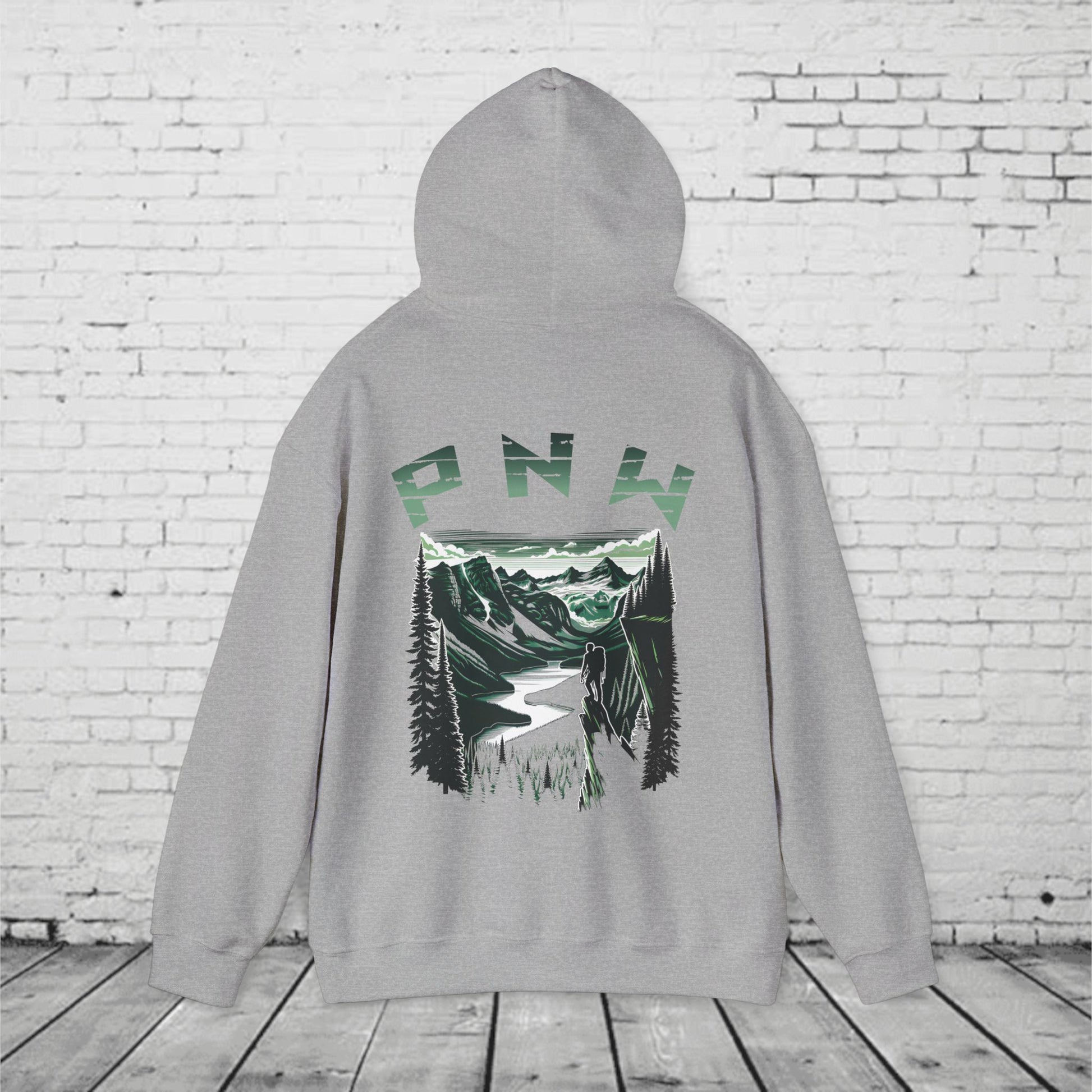 Pacific Northwest Adventure Hoodie – PNW Mountain Climber Graphic Hooded Sweatshirt