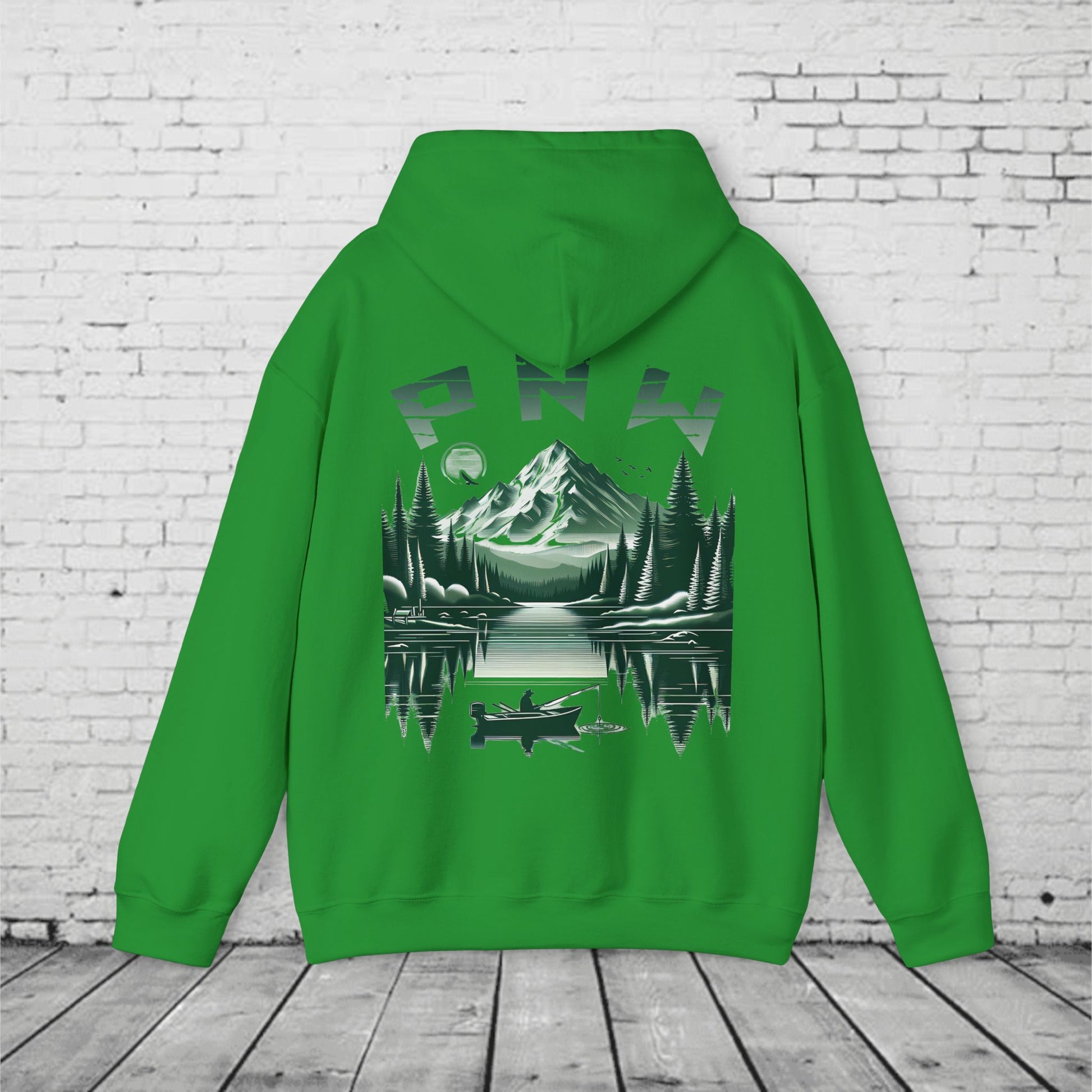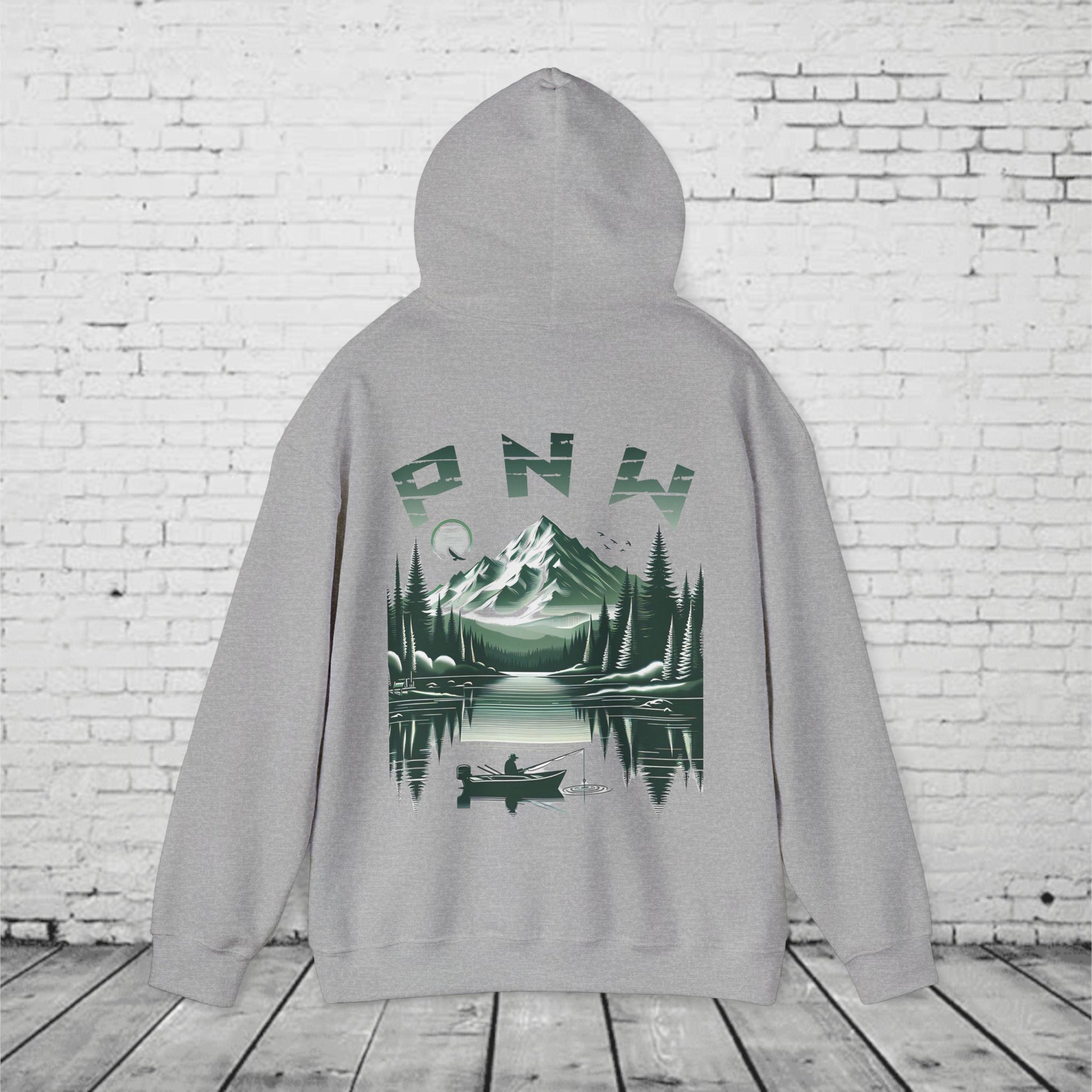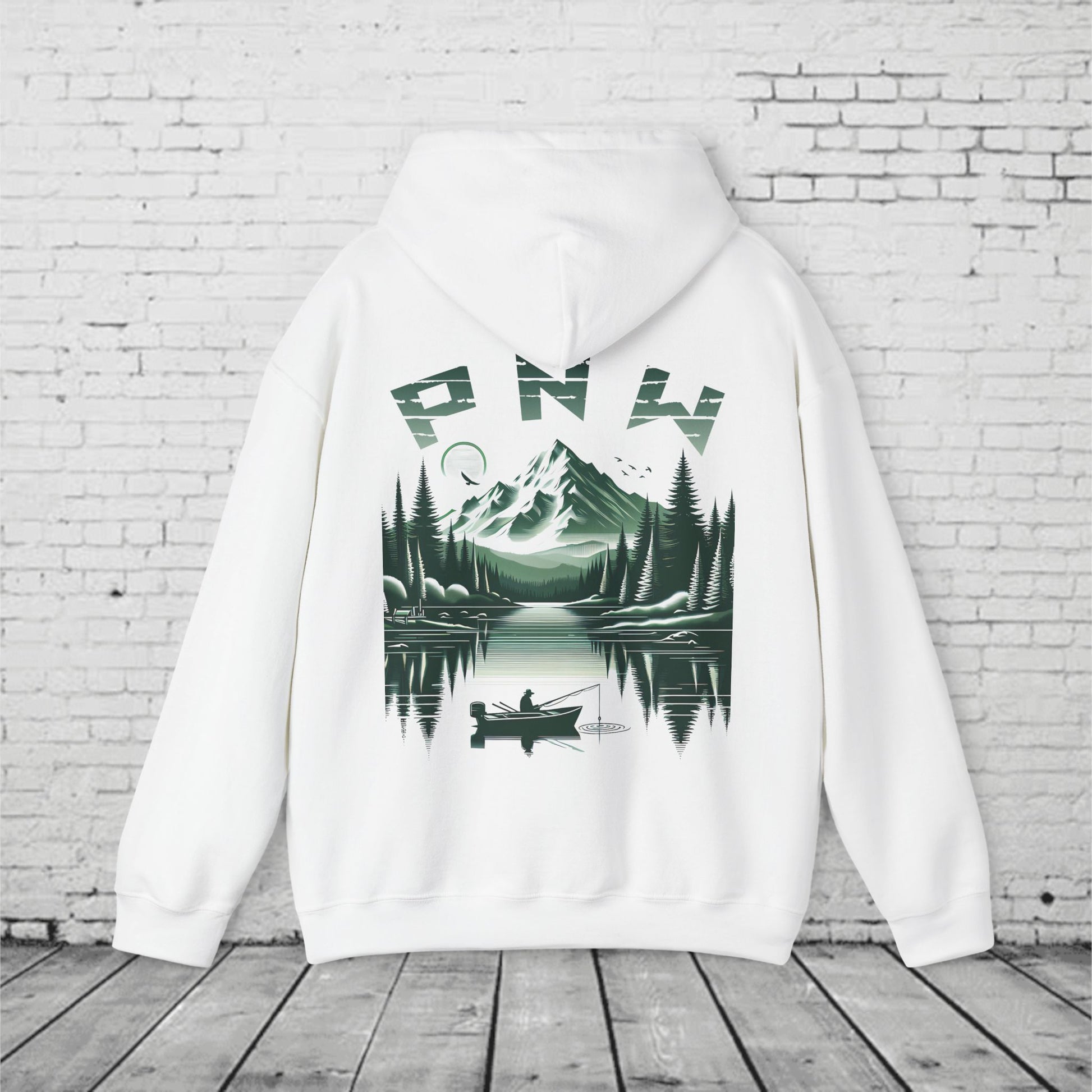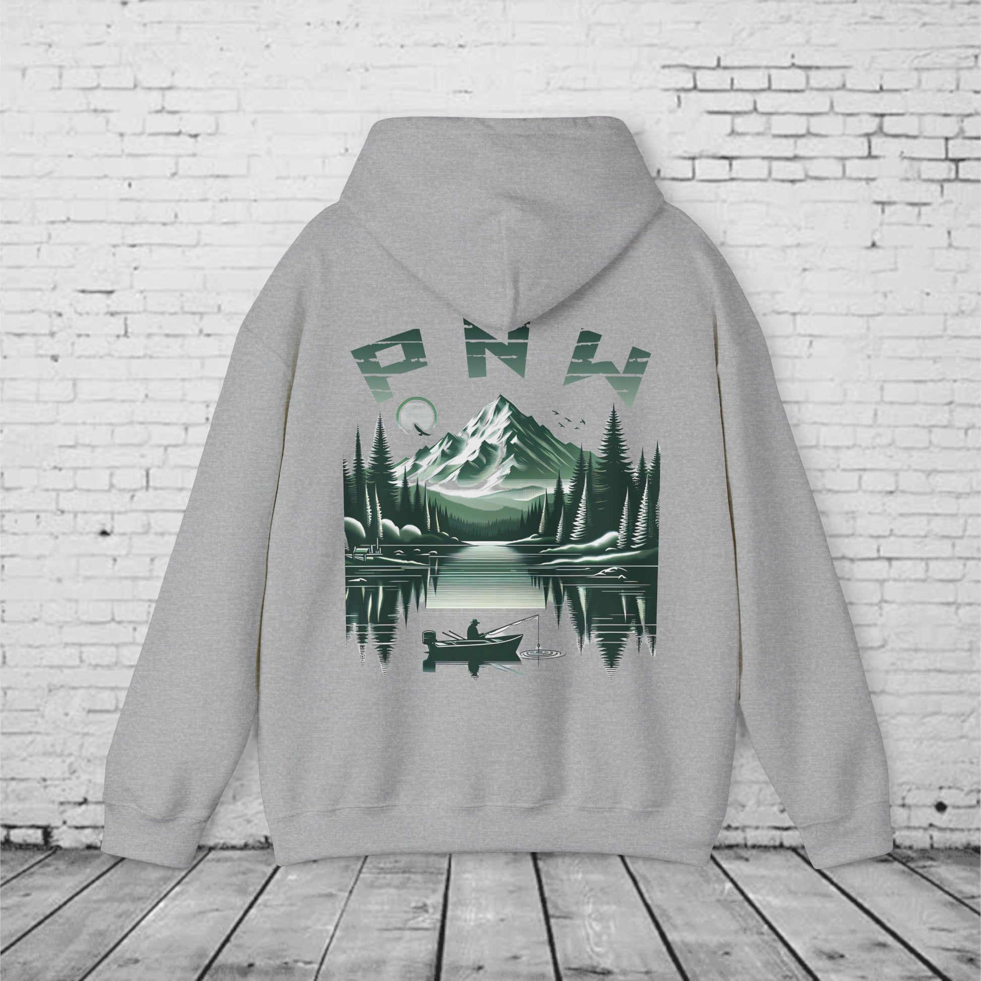 PNW Fishing Hoodie β Scenic Mountain & Lake Graphic | Pacific Northwest Adventure Sweatshirt