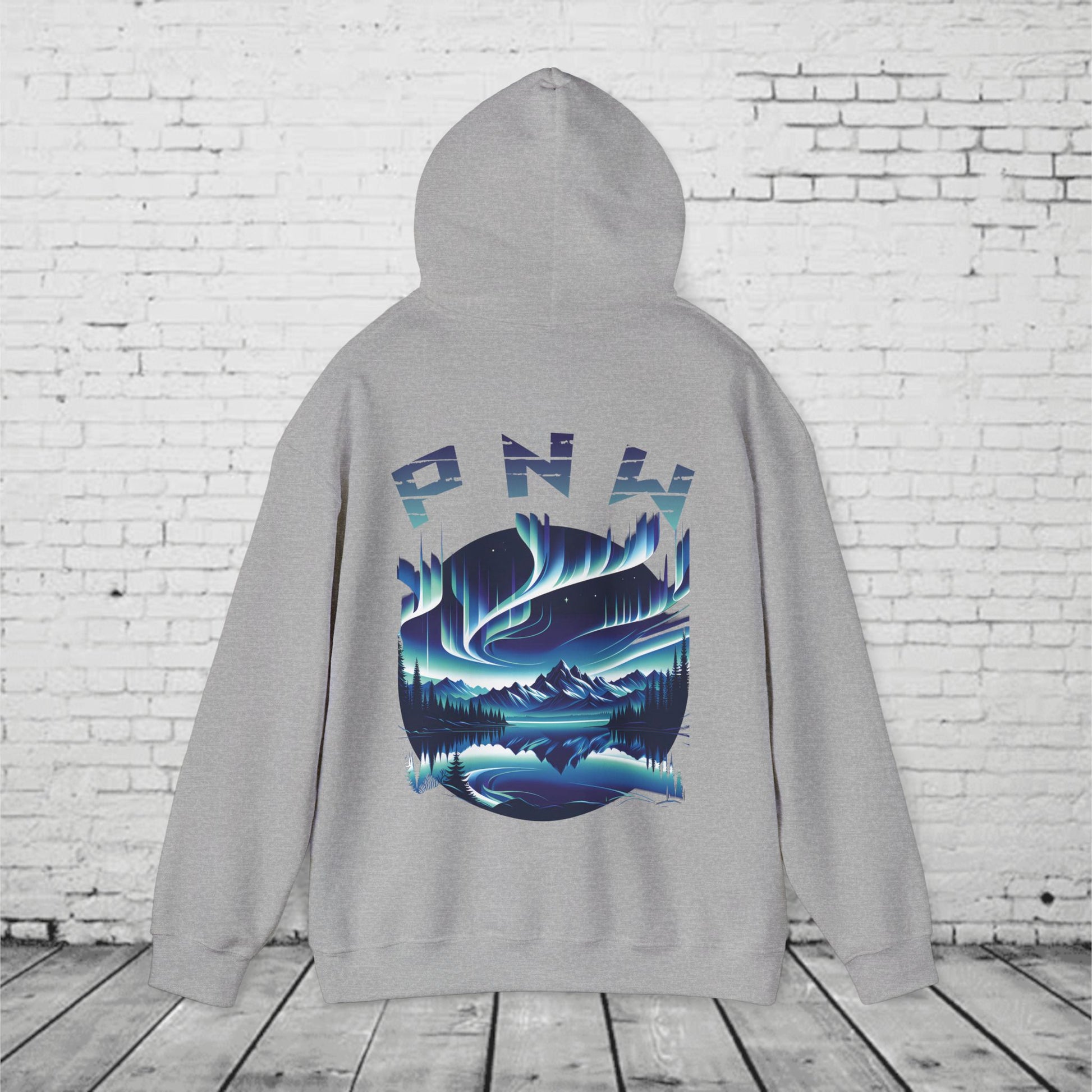 PNW Northern Lights Hoodie β Pacific Northwest Aurora Borealis Sweatshirt | Unisex Heavy Blend