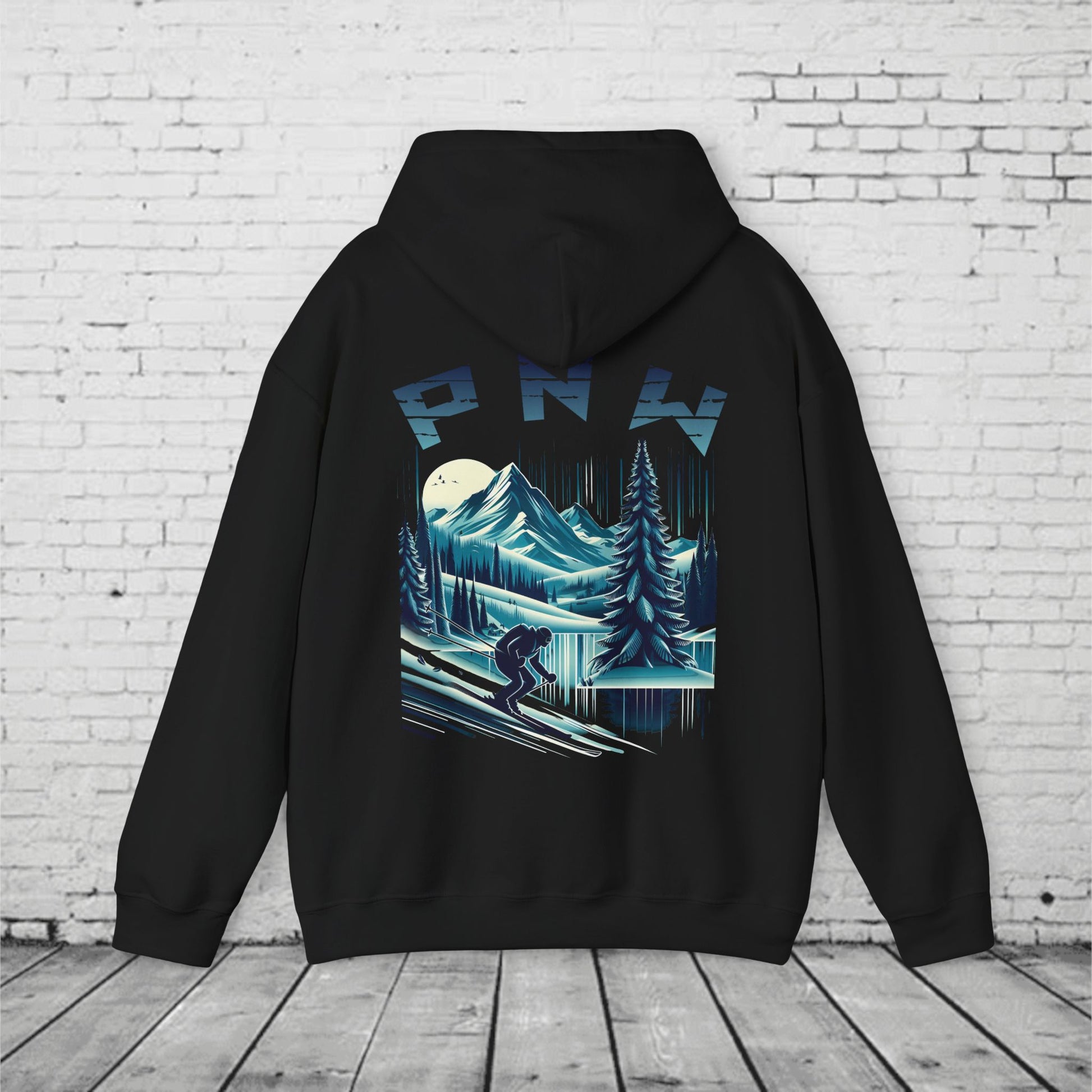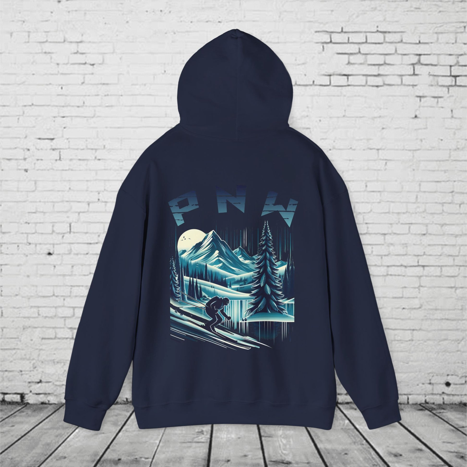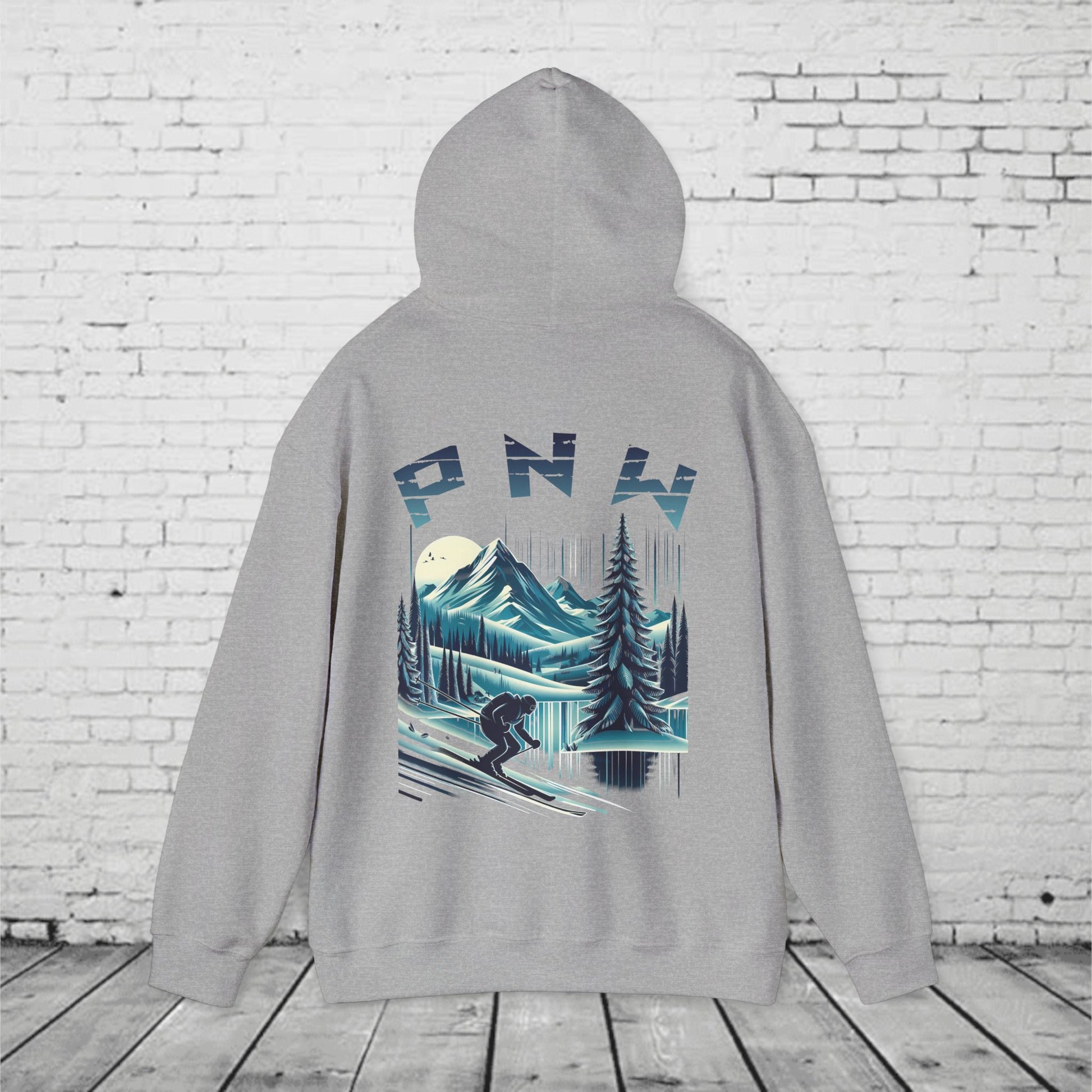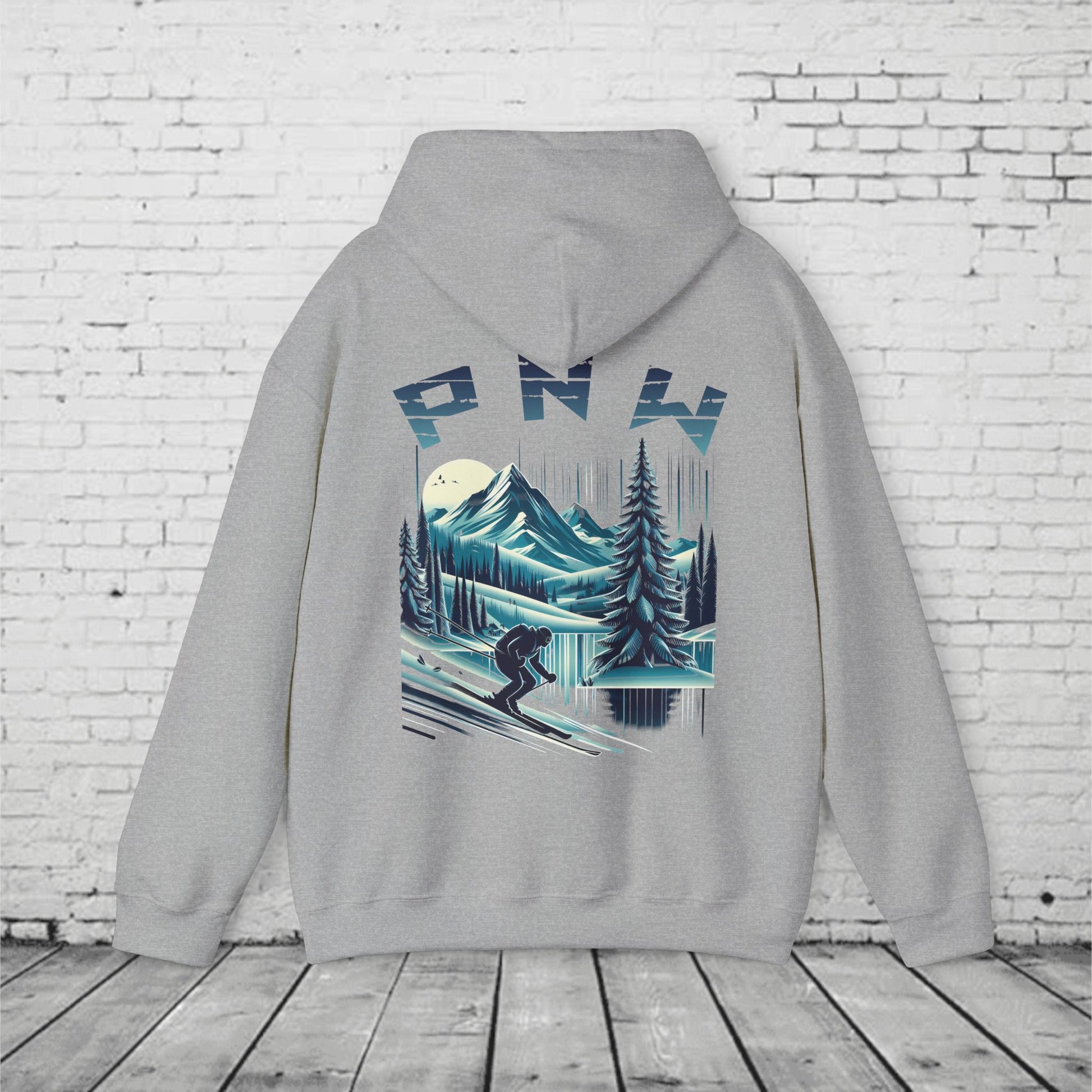 PNW Ski Hoodie β Retro Pacific Northwest Mountain Skiing Hoodie | Unisex Heavy Blend Winter Sweatshirt