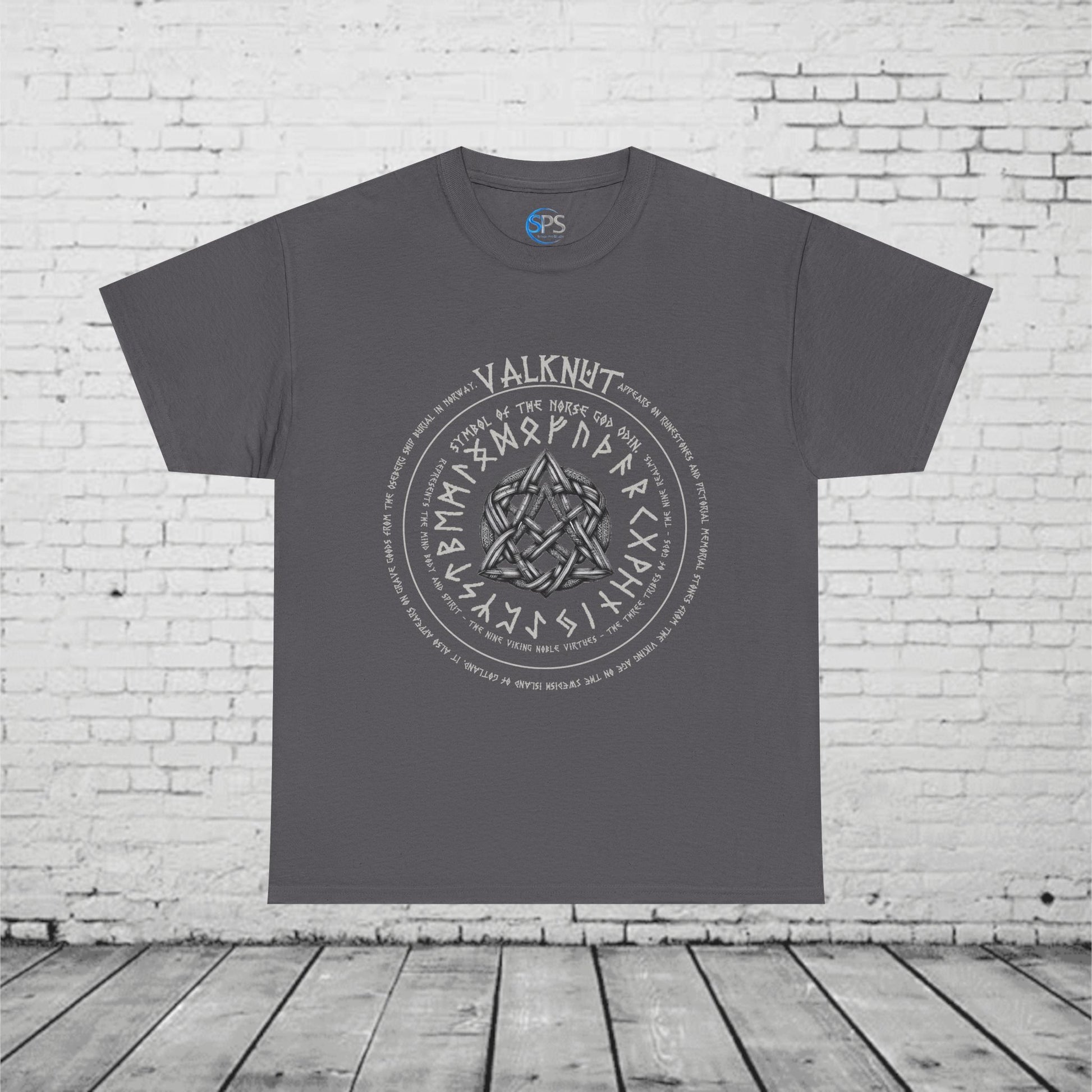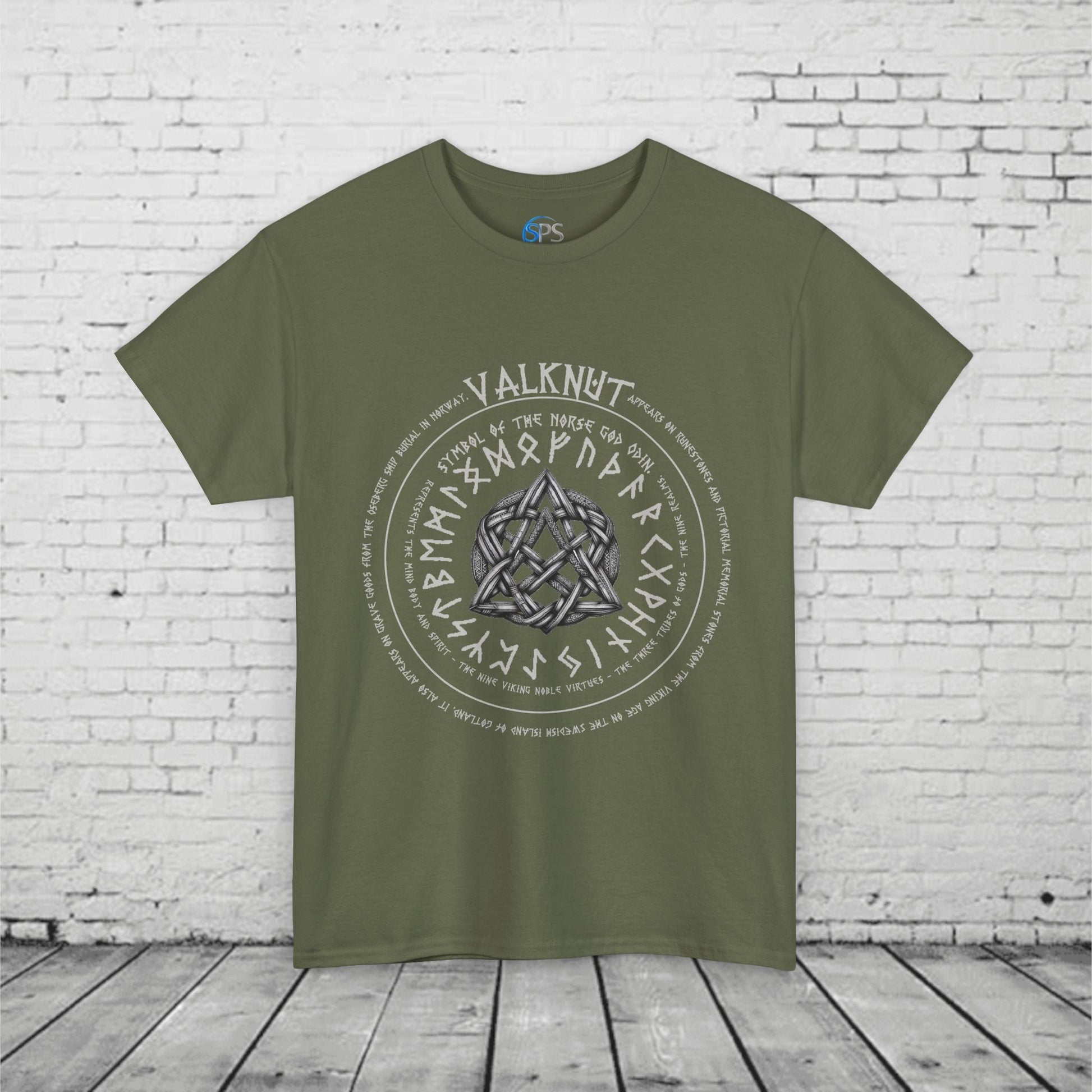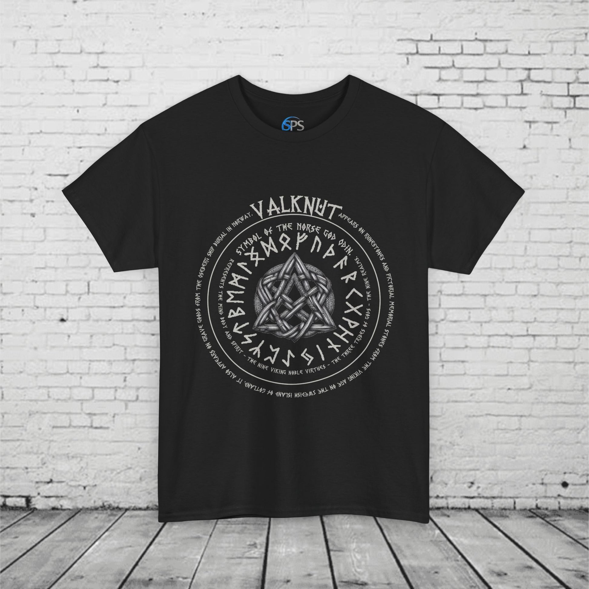 Valknut Norse Mythology T-Shirt - Odin Symbol, Viking Rune Circle, Nine Realms, Pagan Nordic Symbol, Ancient Viking Design Heavy Cotton Tee